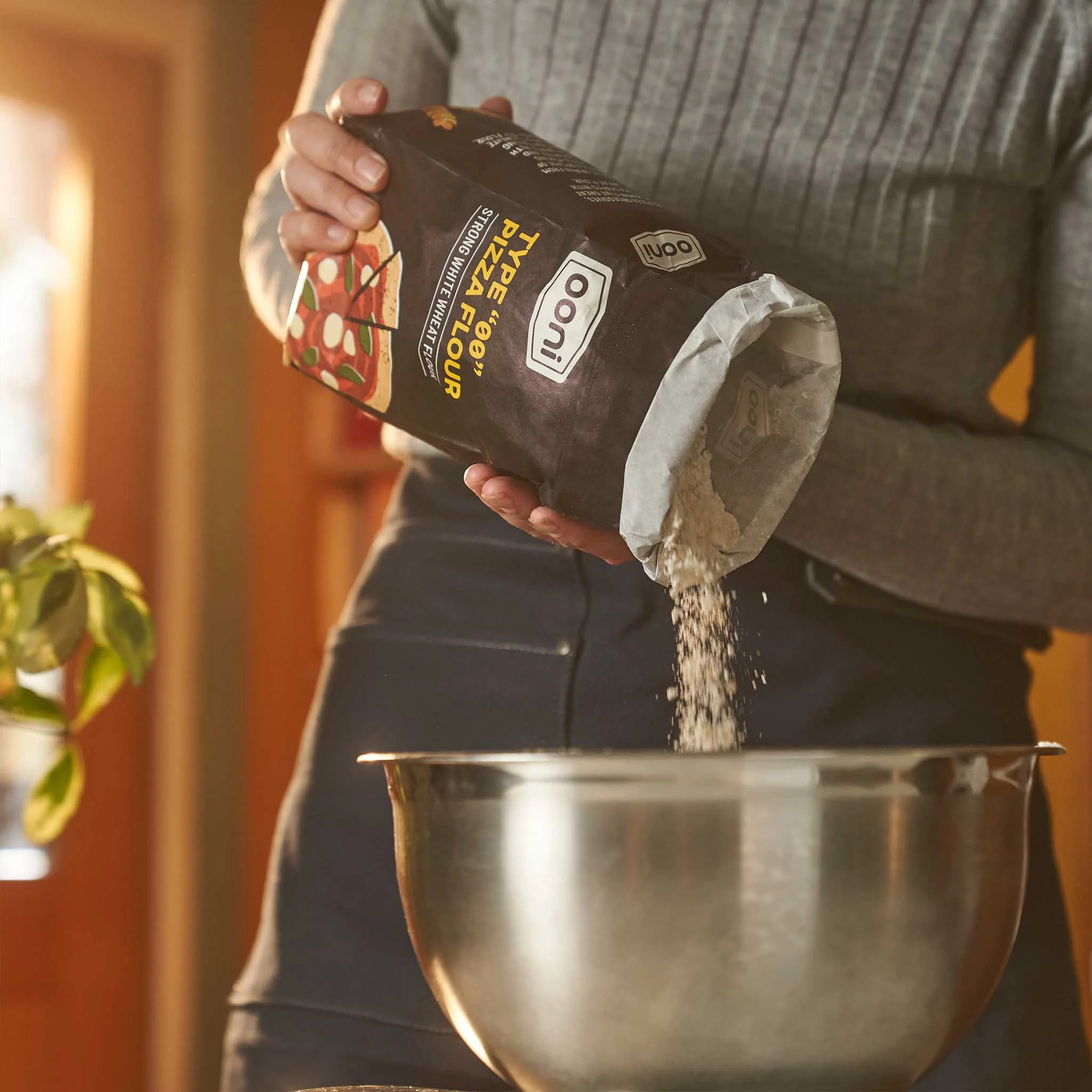 Ooni Type “00” Pizza Flour is made with wheat flour varieties from the UK and around the world, specially selected for strength and elasticity. That means our “00” pizza flour can handle longer fermentation, make super-stretchable dough, and create the fluffy aerated crust synonymous with classic Neapolitan-style pizza.